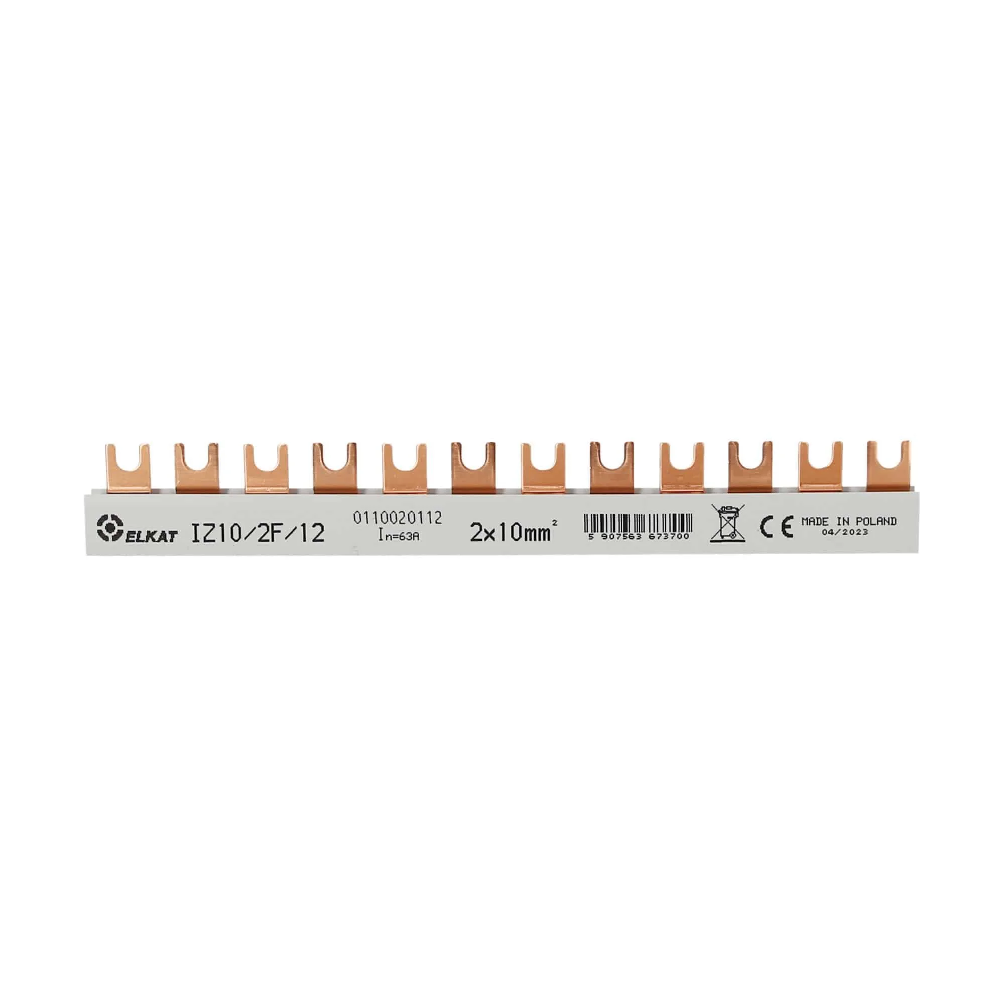 2-phase, 63A insulated comb busbar with forks, divided by phase.