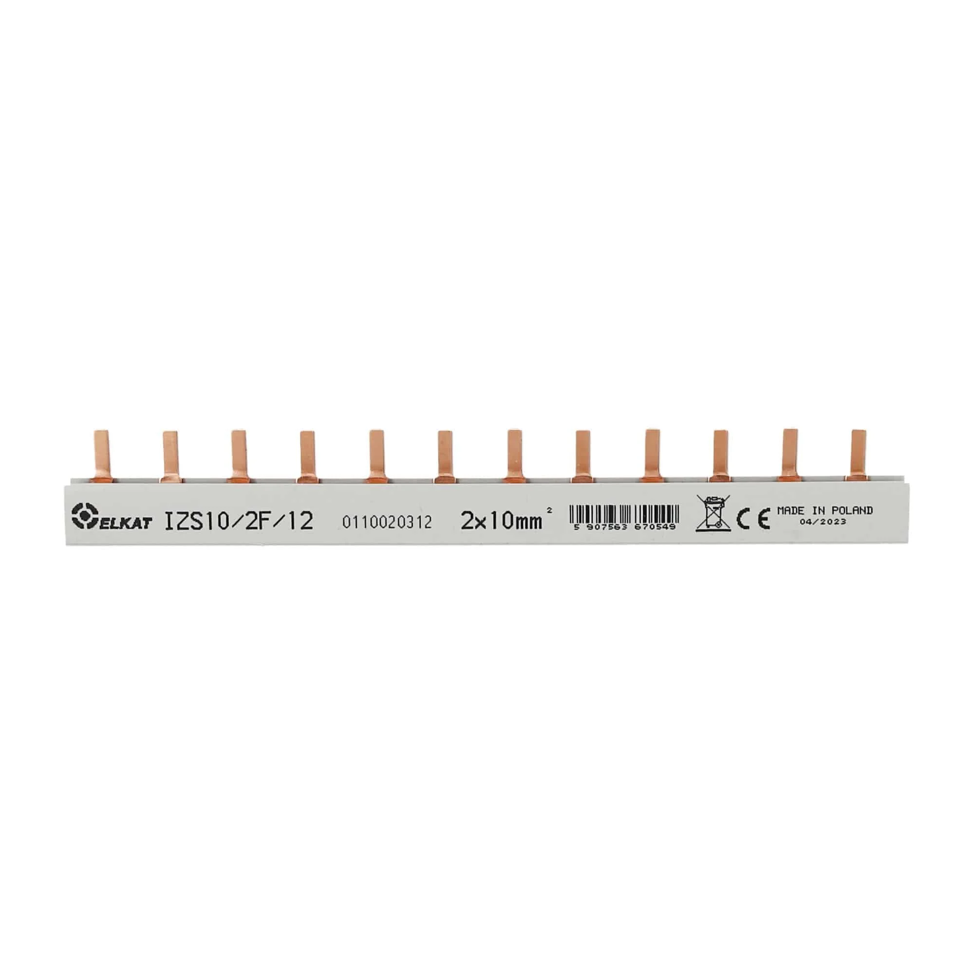2-Phase, 63A insulated comb busbar with pins